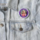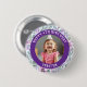 Happy Birthday to you, add name, age and photo to this personalised birthday button. Purple floral background.