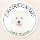 Personalised American Eskimo Samoyed Dog Wedding Round Paper Coaster
