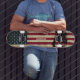 Skating is all about having fun, and there is something for everyone in our skateboard range. A fabulous skateboard guaranteed to raise a smile! . Show your American pride or give a special gift with this USA American Flag skateboard in a distressed worn grunge design on wood . This united states of America flag skateboard design with stars and stripes in red white and blue. Have fun with your personal message-.skating the streets and skatepark, or cruising.