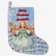 This beautiful Angel stocking with swirling snow and Christmas lights behind her can be personalised with any name you would like