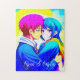 Personalised Anime Couple Hugging Pink and Blue Jigsaw Puzzle