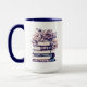 Pretty pink and blue vintage pile of books with roses on the top AI art personalised cofffee mug.