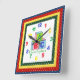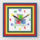 Personalised (ANY NAME) Child's Clock w/Numbers A charming clock perfect for any nursery, child's bedroom, daycare, or even classroom! The base of the clock is designed with stripes(Blue, red, yellow, and green) and white polka dots. The face of the clock, where you will place your child's name, features bold numbers as well as some very fun playtime items - a train, a teddy bear, some ABC building blocks, and a beach ball. The added name will be written in green - so this clock can be for either a boy OR a girl! PLEASE REMEMBER to add your child's name!