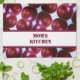 Personalised Apple Pattern design will let everyone know just who's kitchen this is.  Customisable burgundy lettering is displayed against a white strip with a background apple pattern.