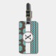 Personalised Aqua and brown Flowers Zigzag Luggage Tag