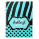 Personalised Aqua Black White Striped Polka Dots Notebook
