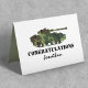 A simple military passing out greeting card featuring a camouflage army tank, the word "congratulations", and the name of the soldier.