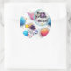 Featuring a cute astronaut floating among colourful planets, stars, and a magical galaxy background, these stickers are perfect for space-themed birthday parties. Personalise them with your child’s name to make your party decorations even more special.