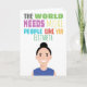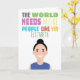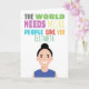 Cute Illustration of a female character with customisable name and text on the front that reads: "The world needs more people like you".