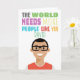 Cute Illustration of a male character with customisable name and text on the front that reads: "The world needs more people like you".