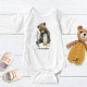 An adorable bear with a honey jar on this baby body suit. Personalise it with his name.