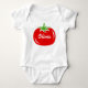 Personalised jumpsuit with cute red tomato design for new parents and newborn baby boy or girl. Fun babyshower clothing gift idea for grandson or granddaughter. Add your own name or funny quote to this top. Custom bodysuit with healthy food theme vector art. Unique clothes with fresh vegetable / fruit icon. Nice for vegetarian or vegan mother and father. Create your own jumpsuits for small kids and infants. Childrens outfit with unisex print.