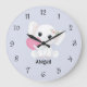 Featuring a cute white elephant holding a pink heart, this custom clock is perfect for baby girls, toddlers, and young kids.