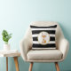 A pillow featuring a woodland themed design with an illustration of a baby fox wearing a flower crown. Skunk sits inside a circle with pom pom inspired trim.