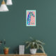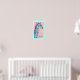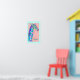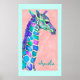 A baby giraffe in shades of blue and purple on a soft coral pink background. You can add a child's name in your choice of font style, colour and size for a personalised art for your child's room. The aqua border can also be changed to a different colour to coordinate with other colours in the room.