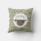 A pillow featuring a woodland themed design with an illustration of a baby sloth hanging from a tree branch surrounded by greenery. Personalise the name.