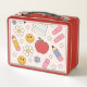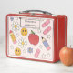 Make lunchtime extra fun and personal with this custom metal lunchbox featuring a vibrant back-to-school design! Adorned with colourful pencils, smiley faces, stars, notebook paper, flowers, and apples, this cheerful design is perfect for students who want to carry a bit of joy with their meals.