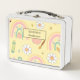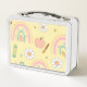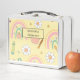 Make lunchtime extra fun and personal with this custom metal lunchbox featuring a vibrant back-to-school design! Adorned with colourful pencils, smiley faces, stars, notebook paper, flowers, and apples, this cheerful design is perfect for students who want to carry a bit of joy with their meals.