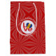 Barbadian or Bajan LOVE FLAG on a personalised medium paper gift bag for your occasion. The word LOVE is found in red letters inside a white, fractal circle of squiggly squares, with a heart shaped flag for the O. The circle sits on a red, fractal background, also, of squiggly squares. Great for your guests at your next occasion or party to celebrate Barbados. Can be customised for any occasion and other sizes are available.
