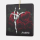 This beautiful ballet themed Christmas ornament features a powerful ballerina dancing in front of a dark background and red roses. Personalise the front with a name and the back with a year!