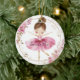 Personalised Ballerina Girl Ceramic Ornament with beautiful watercolor pink florals and girl dancing in her tutu and ballet slippers, Joyful dance ornament for ballerinas.