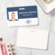 Create a personalised Employee Name Badge featuring a custom photo, scannable barcode, and company logo. This sleek and professional design, available in navy blue and white, is fully customisable on both sides. Choose from a variety of modern sans-serif fonts for a clean, contemporary appearance. The badge is available with options for a lanyard, metal clip, or retractable reel. Plus, there’s no minimum order requirement