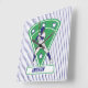Personalised blue and white baseball star design showing a batter taking a swing in a blue and white baseball jersey uniform with a green baseball field green diamond with blue and white stars in the background. This can be fully personalised with the name of your choice.