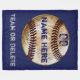 Personalised Baseball Fleece Blanket 3 Text Boxes for Your Jersey Number or Monogram, Name and Team Name or YOUR TEXT or Delete. CALL Designers Rodney and Linda to change the Navy Blue Baseball Blanket Colours grey and blue Text to ANY COLOR combinations.CALL Rodney and Linda: 239-949-9090 for HELP, Design CHANGES or to create different personalised baseball gifts for players and gifts for baseball coaches. Awesome personalised baseball team gifts for kids to adults. How about youth baseball coach gifts in your team colours.