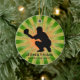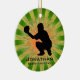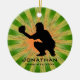 Baseball Catcher Personalised Ornament Christmas 20XX. A Catcher in position against a green and orange starburst background. All text customisable, front and back!