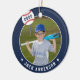 Commemorate an awesome season for your favourite baseball player with this cool custom ornament in a navy blue, red, and white colorway. Personalise the front with the player's photo, name and the year, and add more details to the back, including the team or league name, season, age, position, and coach name.