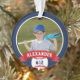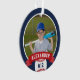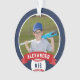 Commemorate an awesome season for your favourite baseball player with this cool custom ornament in a navy blue and red colorway. Personalise the front with the player's photo, name and jersey number, and add more details to the back, including the team or league name, season, age, position, and coach name.