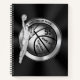 Personalised, Basketball Notebook for Guys. Cool Black and Silver Basketball Notebook with YOUR TEXT or DELETE Text or any part of the Design. TRANSFER this Design to your choice of THOUSANDS of other cheap Basketball gifts for boys, basketball school stuff, device cases and so much more. CALL Designer Linda: 239-949-9090 EST for CHANGES to the COLORS, Designs, Sport, Occasion or Product. Designer Linda can also change the Basketball Guy to a Girl or you can just DELETE the Basketball Player.