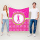 Monogrammed basketball fleece blanket that features a pink, green, and white polka-dot design. Use the custom text field to add a name before you order. Or if you prefer, leave the text field blank for no name.