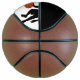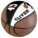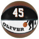 Personalised Basketball with Player's Name Number. The design has a black silhouette of a basketball player with a basketball. The text is in modern typography - personalise it with player's name and number.