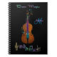 Personalised Bass Magic Music Notebook. A stand up bass or contrabass with a rainbow neck and musical notes. Fill in your name and initial at the prompt to personalise and customise anyway you like. A great gift for your favourite bass player, musician or music lover.
