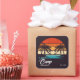 Retro Beach camp bachelorette party stickers to match your t-shirts. These personalised banner show a retro sunset with a saying to match the mood of your girls trip and a great backdrop to all your holiday photos.
