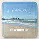 Entertain your guests in style with this stylish set of six coasters, perfect for your beach house or vacation home. The design features the tranquil blue waters of Seal Rocks, off the coast of Sydney, Australia. The stylish white text is customisable so you can add your own family name.