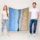Add coastal style to your home with this personalised fleece throw blanket. The design features a one-of-a-kind photograph of the tranquil blue waves and soft sand of Seal Rocks, off the coast of Sydney, Australia. The modern, white text is customisable so you can add your own family name.