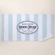 Our personalised, vintage style beach house towel makes a perfect addition to your summer home! Design features nautical pale blue and white stripes and navy blue vintage typography, with your family name and year established for a unique customised touch. Makes a great housewarming gift for new beach house owners!