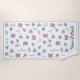 Perfect for the beach! This delightful pattern for boys and girls features a sandcastle, a green pail full of sand, a blue shell, a beige shell and a red crab with a coloured border. Personalise with your name.