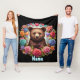 Personalised Bear Cub with Roses and Hearts Fleece Blanket
