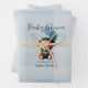 Enhance your festivities with a unique baby shower themed gift wrapping paper sheets featuring blue colours, and a casual chic teddy bear with gingham and balloons. Personalise with the name of the event, and the name of the guest of honour on one sheet. Great coordinate item. Bear Jean Baby design. Use the template to create special, personalised gift bags.