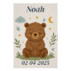Create a timeless keepsake with this adorable personalised bear poster for kids. Featuring a sweet, sleeping bear surrounded by stars, leaves, dragonflies, and a dreamy moon, this design brings warmth and charm to any nursery, bedroom, or playroom. The name and birthdate are fully customisable, making it a thoughtful gift for newborns, baby showers, birthdays, or baptisms. The soft earthy colours and gentle design make it a perfect match for woodland or nature-themed interiors. Whether you’re decorating your baby’s space or looking for a heartfelt gift, this unique piece of art is sure to become a favourite. Printed with high-quality details and a peaceful atmosphere, it celebrates the beauty of new life and the joy of personal connection. A lovely way to mark a child’s arrival in the world, this poster turns a name and date into lasting wall art filled with love.