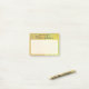 These personalised post-its include the text "from the desk of" and "your name". The template makes it easy to edit either line of text for the perfect personalised post-its. The background is a beautiful golden yellow design with swirls of colours inspired by artisinal marbled paper. There is also a large area where the background art is lightened for the writing area. Add these very elegant and classy post-its to your desk.