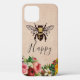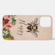 Personalise this pretty bee themed phone case with your lettering. Background is a burlap print with garden flowers bordering the bottom.