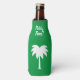 Personalised beer bottle cooler with tropical palm tree logo and custom name. Funny summer party design with customisable green background colour. Create a cool beverage holder for men and women; dad, father, husband, uncle, grandpa, son, wife, aunt, mum, mother, brother etc. Great for bbq, beach party, summer vacation, holidays, exotic destination wedding and more.