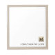 Elevate your stationery collection with this personalised notepad featuring a brushed metallic gold monogram initial and your name in classic block typography. The design is framed in a sophisticated beige linen print, making it the perfect accessory for any workspace. This notepad contains high-quality paper, perfect for jotting down notes or making to-do lists. It also makes for a thoughtful and practical gift for friends, family, or colleagues.