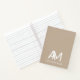 Stay organised and stylish with this personalised beige spiral notebook featuring a unique modern monogram with overlapping two initials and your name below in sans serif font. The monogram and name are positioned in the lower thirds of the notebook. The notebook has a beige background and is made of durable paper, perfect for jotting down notes, writing down ideas, and more. This notebook makes a great gift for anyone who loves to stay organised and stylish.