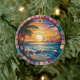 A Personalised Travel Souvenir Ornament designed to celebrate your unforgettable trip. Whether you went for work, enjoyed a romantic getaway, or took part in a school exchange program, this ornament commemorates a special moment you’ll always cherish and want to remember for years to come. This ornament features a stained-glass-style design of a beach with waves at sunset, creating a truly eye-catching piece.