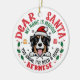 Cute Bernese Mountain Dog Round White Christmas Ceramic Ornament with personalizable dog name, and with the quote "Dear Santa, You Know I've Been A Good Bernese". The back of the ornament features a snowy winter landscape, but you can replace it with a photo of your dog (or any other photo of yours you think suitable...). Perfect gift idea for any Bernese Mountain dog mum, dad, lover and owner around the World.